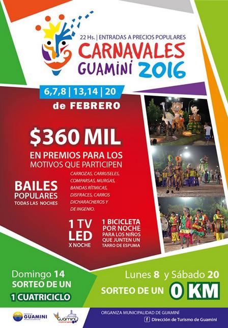 La Municipalidad de Guaminí, a través de las Direcciones de Turismo y Cultura, está preparando el Baile de Carnaval en Garré.