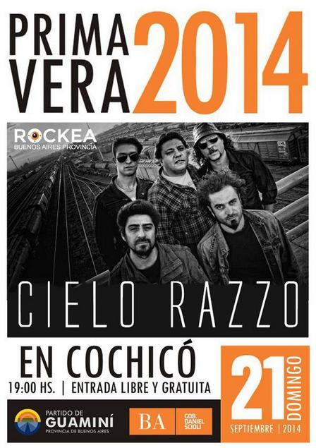El domingo, con entrada gratuita, tendrá lugar un show de Cielo Razzo, desde las 19.00 horas, en Balneario Cochicó.