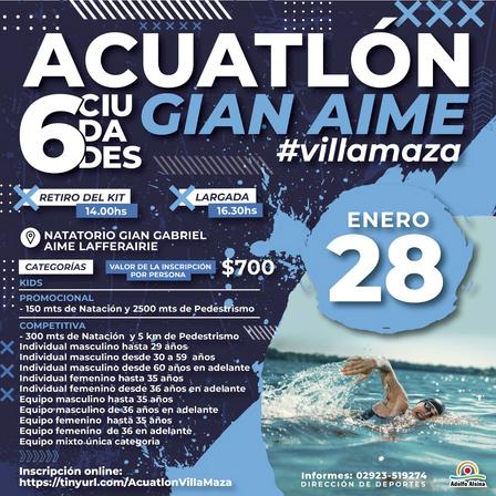 En FM de la Ciudad el titular de Deportes del Municipio de Adolfo Alsina expresó “se nos viene. Estamos preparando un acuatlón. Lo vamos a experimentar porque es la primera vez que se va a hacer en Villa Maza”.