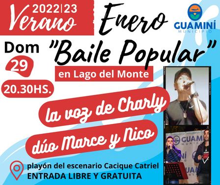 El domingo, desde las 20.30 horas, con entrada gratuita, el Municipio de Guaminí estará realizando un baile popular con el Dúo Marce y Nico.