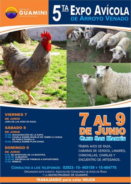 En FM de la Ciudad el Delegado Municipal de Arroyo Venado señaló "este año es: algunas cabañas de lanares, de ovinos, cabañas de cerdos, una cabaña de chinchillas de Pigüé, y a micro emprendedores del Distrito de Guaminí con chacinados, lácteos, y expositores de muebles".