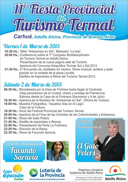 El informe de prensa del Municipio de Tornquist asegura que "poco a poco se va completando la grilla de artistas que animarán la 2ª Fiesta Provincial de la Vendimia, que se realizará el sábado 23 y el domingo 24 del corriente en el predio del Club Hotel de la Ventana, en la localidad de Villa Ventana, bajo la organización de la Secretaría de Turismo, Cultura y Deportes de la Municipalidad de Tornquist".