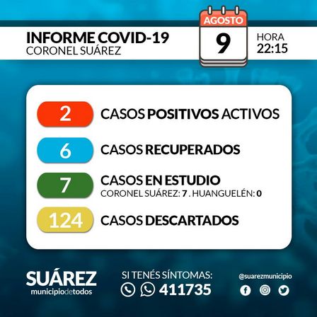 Están siendo analizados un total de 2 de casos en el Distrito de Adolfo Alsina, en tanto que, desde el inicio de la pandemia han sido descartados 16 casos.