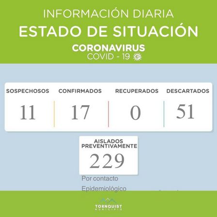 Son ahora más los casos que han sido notificados con la existencia de Coronavirus totalizando diecisiete en el Partido de Tornquist.