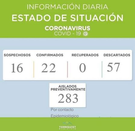 La nueva presentación de datos a cargo del Área de Salud del Municipio indica que hay 22 casos confirmados.