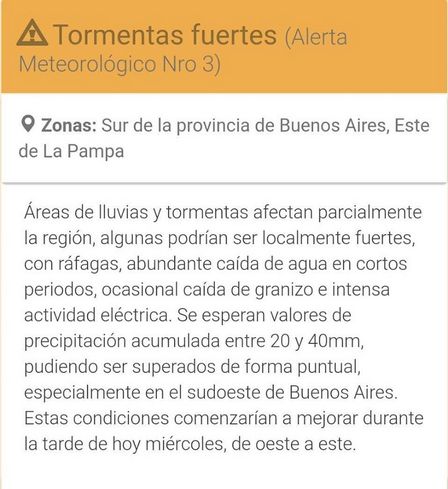 El reporte de Lucas Tolosa dice que “las zonas afectadas serían Río Negro, La Pampa, Sur, Sudoeste y Sudeste de la provincia de Buenos Aires.