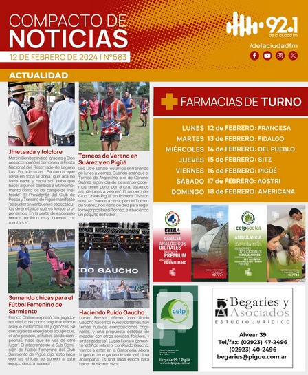 La programación del reporte semanal de noticias cuenta con novedades deportivas, culturales y políticas en el transcurso de estas horas.