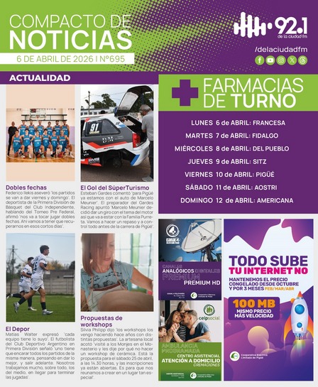 Este es el número 695 de los reportes semanales de noticias de la 92.1.