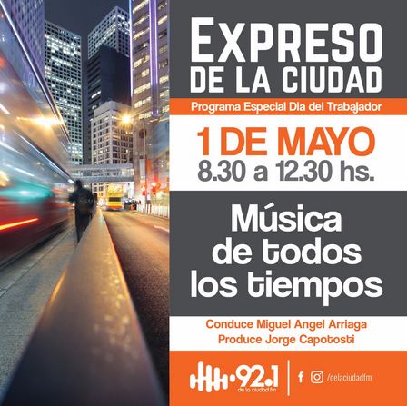 Hasta las 12.30 horas sonará el Expreso de la Ciudad con la producción de Jorge Capotosti.