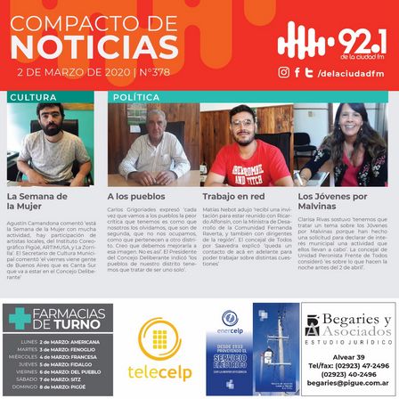 Novedades políticas y culturales son las registradas esta vez por el Compacto Delaciudad.