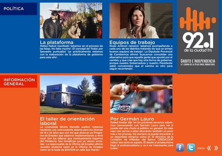 Ingresando al Facebook y al Twitter de FM de la Ciudad uno puede leer las últimas novedades sociales, políticas, deportivas y culturales.
