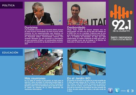 El reporte semanal de noticias de la 92.1 están disponible en Twitter como así también en Facebook.