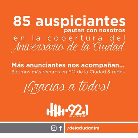 FM de la Ciudad está agradeciendo a los anunciantes que acompañan estos días de cobertura especial.