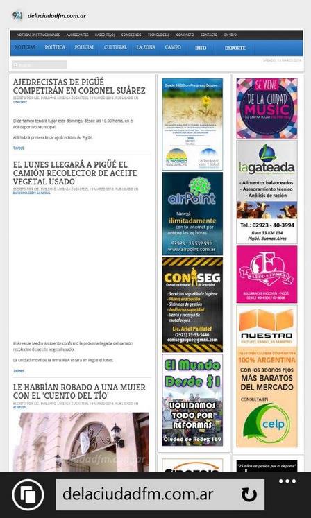 En el portal de www.delaciudadfm.com.ar es posible anunciar gráficamente.