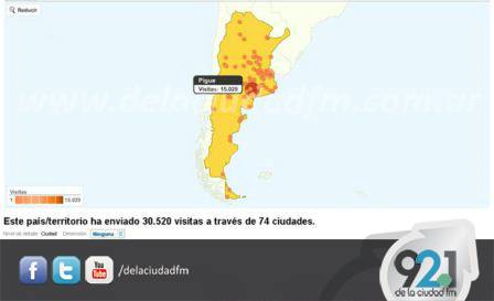 Según se indica en las estadísticas que provienen del servicio de hosting de la emisora pigüense la cantidad de lectores va en ascenso mes a mes, ya que, julio, desde el día 1 hasta el 31 inclusive, ha denotado una nueva marca récord en la afluencia de visitantes al sitio de internet.