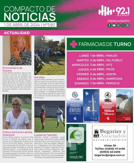 En vivo, desde la localidad, la transmisión se hará vía redes sociales, web y por el 92.1 del dial