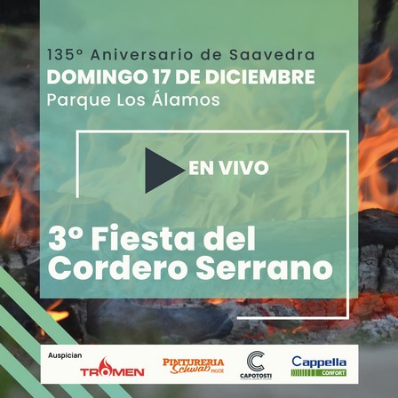 El 135° Aniversario de Saavedra junto a la 3° Fiesta del Cordero Serrano serán parte de una transmisión en vivo.
