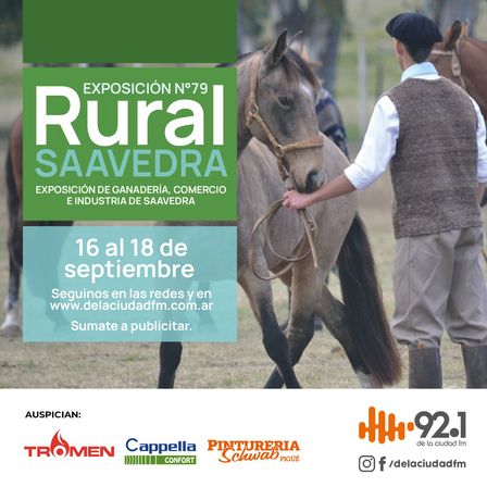 La cobertura especial de la 92.1 ya está confirmada para los próximos días 16, 17 y 18 de septiembre desde el predio de la entidad organizadora.
