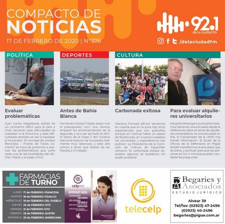 En el portal www.delaciudadfm.com.ar/compacto puede leerse el nuevo reporte semanal de noticias.