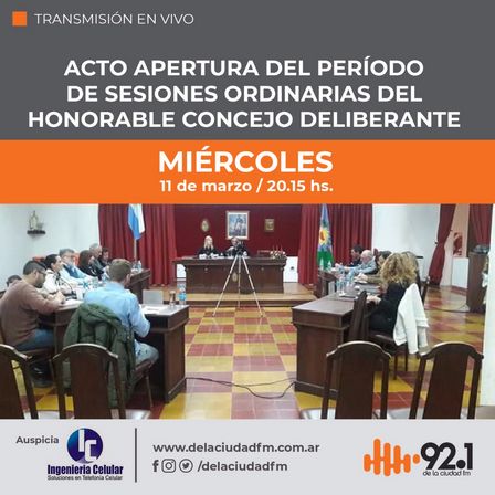 Desde el recinto Josefa Álvarez de Villa Abrile será transmitido el acto de apertura de las Sesiones Ordinarias del Honorable Concejo Deliberante.