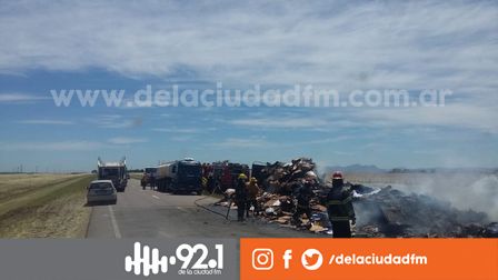 En el lugar debieron trabajar Bomberos Voluntarios con el fin de sofocar las llamas que afectaron al semi.