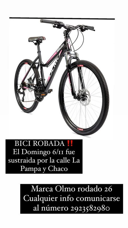 Es rodado 26, color negra, y se la robaron de calle La Pampa y Chaco de Pigūé este domingo.