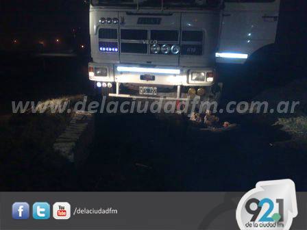 Según le indicaron a FM de la Ciudad, frente a la Estación de Servicio SHELL, el chofer de un camión perdió el control del mismo, y su acoplado quedó enganchado en una alcantarilla.