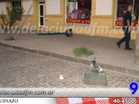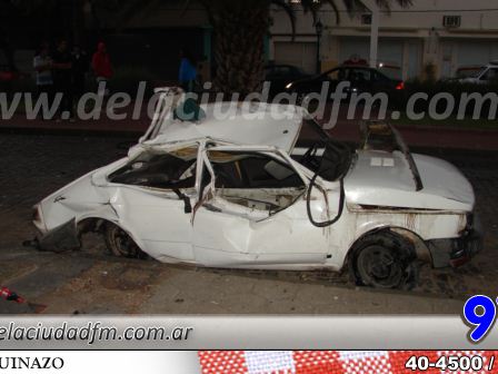 El vehículo color blanco volcó impactando fuertemente contra una de las farolas de iluminación ubicada sobre la vereda.
