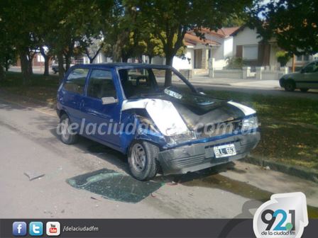 Un Fiat Uno color azul, con chapa patente BLL 663, fue partícipe de una colisión registrada esta mañana cuando se topó con un Volkswagen Bora, color blanco, y luego con una pick up también blanca.
