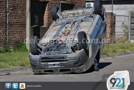 A la altura del 1.200 de Sadi Carnot, en el cruce con calle Juana de Arco, una Renault Kangoo, color gris, en la que circulaban dos personas, sufrió un vuelco luego de chocar con un Peugeot 207, color gris, comandado por una mujer.