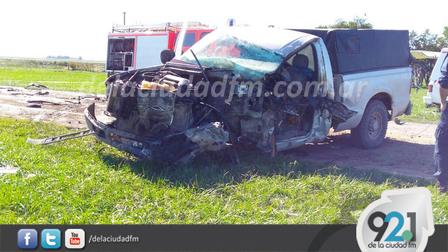 Una pick up Ford F100, color gris, con cúpula de lona, participó de la colisión con dos transportes de cargas pesadas.