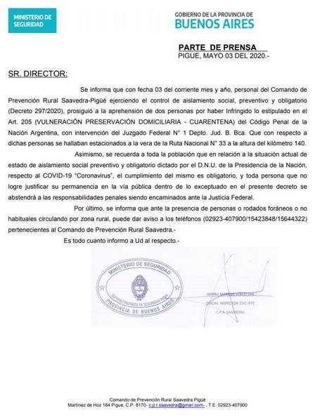 Fue a pocos kilómetros del Acceso a Pigue que personal policial efectuó la aprehensión.