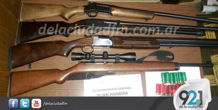 El informe policial asevera que "siendo las 17:55 horas, a consecuencia de un llamado telefónico recepcionado en la sala de guardia de la Estación de Policía Comunal Puan Primera, dando cuenta de la presencia de sujetos que se hallaban cazando con armas de fuego sobre la banquina de la Ruta Nacional 67 en dirección a la localidad de Pigue, a escasos km., del límite del partido, sin darle importancia al transito vehícular de la ruta, personal de dicha dependencia, se constituyó en el lugar, procediendo a la aprehensión de los ciudadanos Femín Emilio Ferreyra, argentino, de 41 años de edad, casado, domiciliado en la calle Madrid nnro. 179 de Pigue; Rodrigo Martín Fernández, argentino, de 40 años de edad, empleado, domiciliado en la calle Pascual Simone 325 de Luján; Miguel Eduardo Dalton, argentino, de 49 años de edad, empleado, domiciliado en la calle 22 bis 3494 de Mercedes; Rubén Horacio Tolosa, argentino, de 46 años de edad, empleado, domiciliado en la calle 3116 de Mercedes y Nicolás Omar Imaz, argentino, de 27 años de edad, soltero, empleado, domiciliado en la calle 11 nro. 3100 de Mercedes, por hallarse incursos in fraganti en el delito de Portación ilegítima de arma de fuego, Articulo 189 bis del C.P., procediéndose a incautar una carabina calibre 22 PLG largo rifle, marca Legend, nro. 9602014, una escopeta calibre 12, marca Rossi, nro. SP503698; una escopeta calibre 12 marca Magtech nro. 53822 y una escopeta calibre 12 marca Boito nro. R307626-16 y la cantidad de 15 cartuchos calibre .22 largo marca CBC, punta hueca y 17 cartuchos intactos calibre 12/70, marca Orbea y Saga, quedando todos alojados en la Estación de Policía local, en carácter de comunicados, a disposición de la U.F.I Y J. nro. 15 del Departamento Judicial Bahía Blanca, a cargo de la Señora Agente Fiscal Dra. Claudia Inés Lorenzo”.