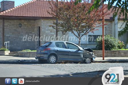 Este mediodía tuvo lugar un choque terminó generando roturas para la zona frontal del Peugeot 206 color gris.