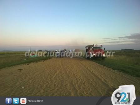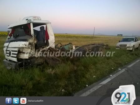 A la 1.15 horas se tomó conocimiento de un importante accidente ocurrido en el Kilómetro 120 de la Ruta Nacional 33, donde dos camiones colisionaron de manera casi frontal. En el hecho se vieron involucrados un camión Volskwagen chapa patente FOO 763 que viajaba vacío y un Iveco que transportaba trigo hacia Bahía Blanca.