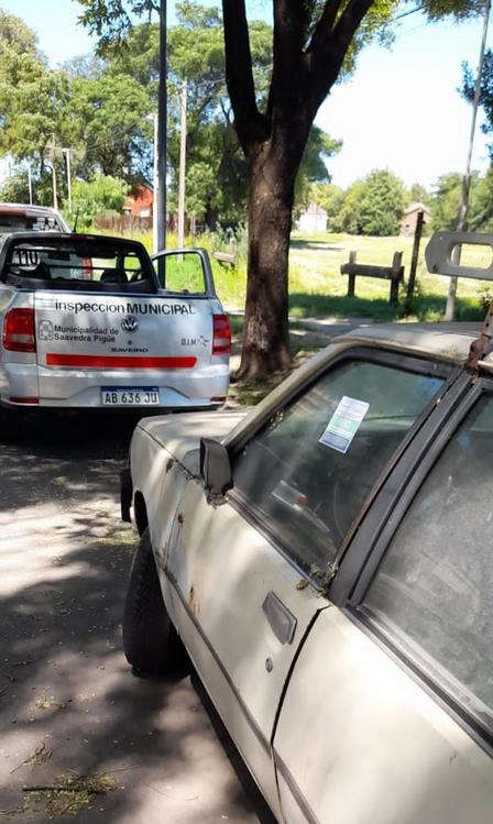 Inspección Municipal, durante la mañana del lunes, 22 de enero de 2024, colocó calcomanías de advertencia en los automotores en condición de desuso ubicados en distintos lugares de Pigüé.