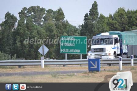 Por unos 4 kilómetros aproximadamente, con el autobomba, los Bomberos de Pigüé acercaron al transporte hacia la Estación de Servicio Shell.