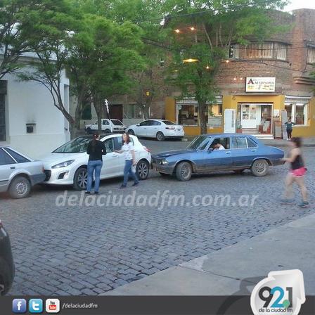 El Peugeot 308, color blanco, se encontraba estacionado cuando fue embestido por el Peugeot 504, color azul, que transitaba por calle Belgrano.