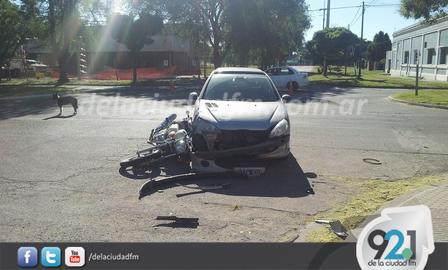 Según le indicaron a FM de la Ciudad el ciclomotor terminó debajo del Peugeot 206, color gris, y el conductor de la moto resultó herido.