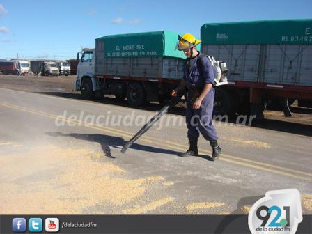 Según le indicaron a FM de la Ciudad con la unidad número 8 los Bomberos Voluntarios procedieron a realizar la limpieza de ruta por la caída de cereal.