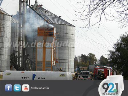 Hace escasos minutos, en la Planta de Silos de Compañía Argentina de Granos S.A., ubicada en J.P. Casella junto a la Planta Depuradora Municipal, se originó un incendio en la secadora de granos.