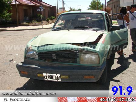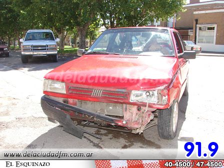 Según le indicaron a FM de la Ciudad, un Peugeot 504, color verde, chapa patente VIP 444, terminó dañado en la zona frontal luego de haber chocado con un Fiat Regatta, color blanco, dominio TWL 712.