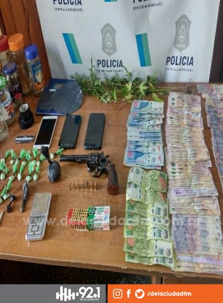 Allí se agrega que se terminó “procediendo al secuestro de 18 envoltorios de nylon (bochas) conteniendo clorhidrato de cocaína arrojando 70 gramos aprox. en pesaje, 1 balanza electrónica de precisión, 3 teléfonos celulares, 1 revolver calibre 22 largo con munición intacta en alveolos, 1 caja de munición mismo calibre, 3 plantas de Marihuana, 44 mil pesos en efectivo, 1 caja de cigarrillos con cogollos en interior, 1 amoladora, 1 taladro, 3 televisores LED.