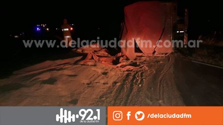 Fue hoy, sábado, por la mañana, que un camión volcó cuando sufrió la rotura de uno de sus ejes.