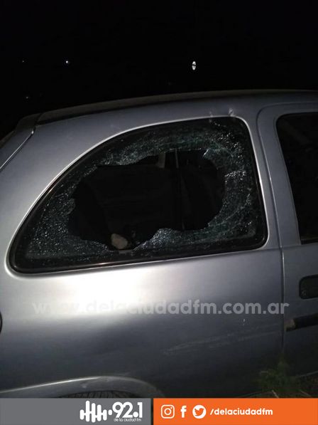 Un vidrio terminó dañado en un Chevrolet Corsa