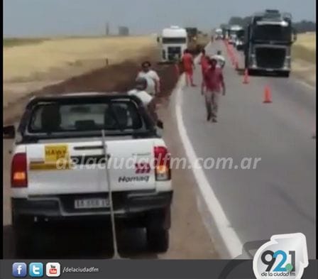 El corte del tránsito permanece en el cruce de Ruta 67 con el Acceso a Pigüé a la altura de las vías.