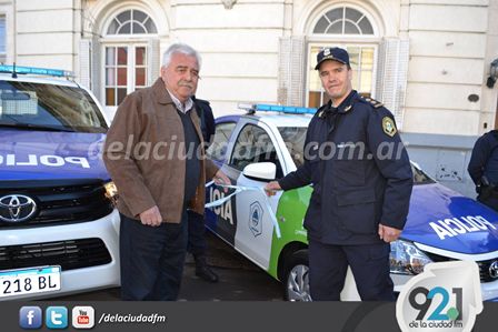 Autoridades policiales recibieron, de manos del Ministerio de Seguridad, dos unidades de la marca Toyota.