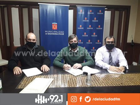 El Intendente Municipal Gustavo Notararigo y autoridades de la Cooperativa de Provisión de Servicio Eléctrico de Pigüé firmaron un convenio.