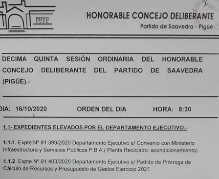 A su vez, esta mañana, en la misma sesión, ingresa un pedido de prórroga para presentar el Presupuesto 2021.