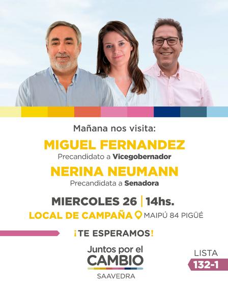 El aspirante al cargo provincial estará arribando a la ciudad junto a la precandidata a legisladora por la Sexta Sección Electoral Nerina Neumann.